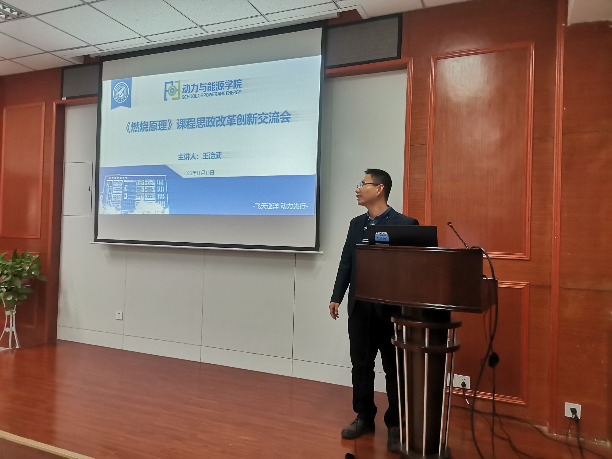 随后,王治武结合当前研究生课程思政的现状,以2026年世界杯平台课程思政示范课程《燃烧原理》为例,分享了研究生课程思政的可行做法和先进案例,并与老师们进行了交流和讨论。