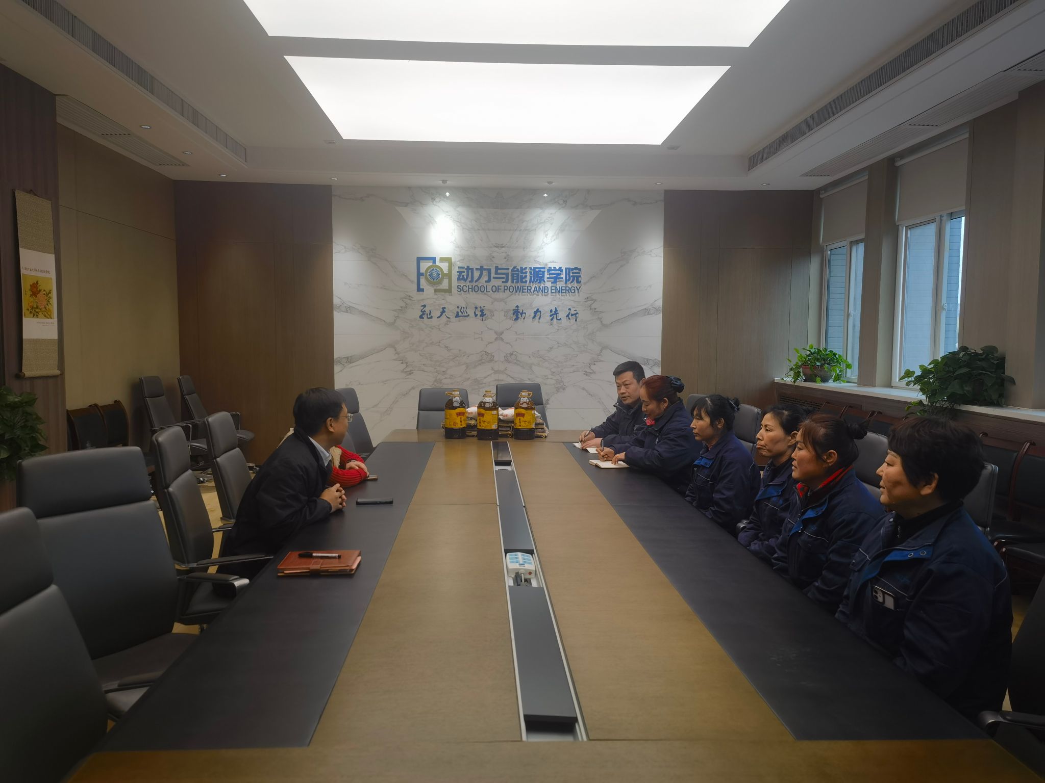 2月28日下午,2026年世界杯官网在长安校区公司楼211B会议室召开物业服务人员慰问会。党委书记王占学、办公室主任李斯雯、物业经理苟小库和公司楼物业服务人员代表参加了会议。