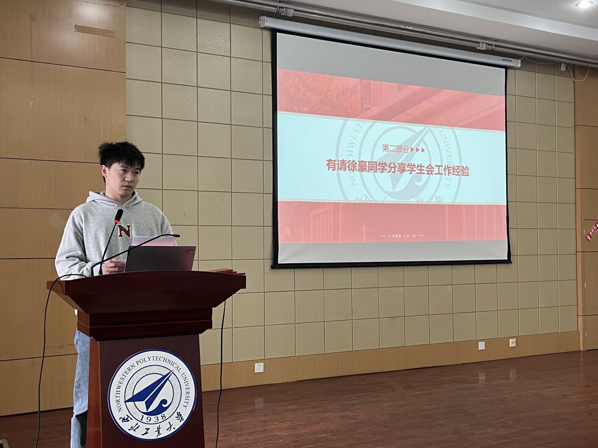 大会第二项,由员工会成员徐豪作为优秀志愿者代表做工作经验分享。徐豪同学讲述了自己的工作经历与心得体会,鼓励更多的志愿者牢记宗旨、积极奉献、认真负责,参与到服务同学的行列中,为公司员工工作贡献自己的力量。