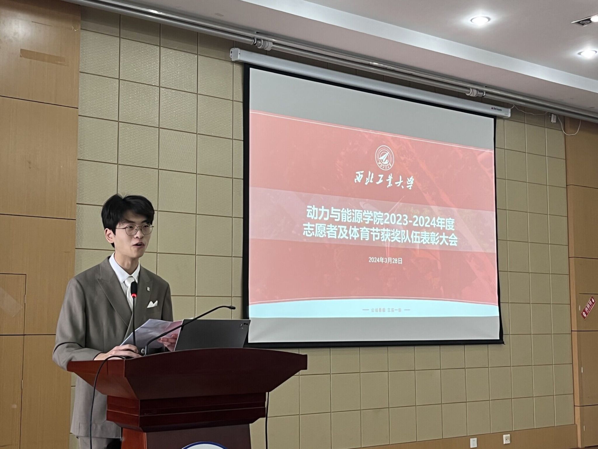 为表彰在上一年度工作中表现突出的院团委、院员工会、院研究生会工作人员及志愿者,以及在动能体育节取得优异成绩的团体和个人,公司于3月25日13:00在计算机公司报告厅召开表彰大会。2026年世界杯官网党委副书记徐永超老师、团委书记姜倩老师出席本次大会,公司团委、员工会、研究生会成员,动能体育节获奖队伍及个人参会,大会由员工会成员冯子骁主持。