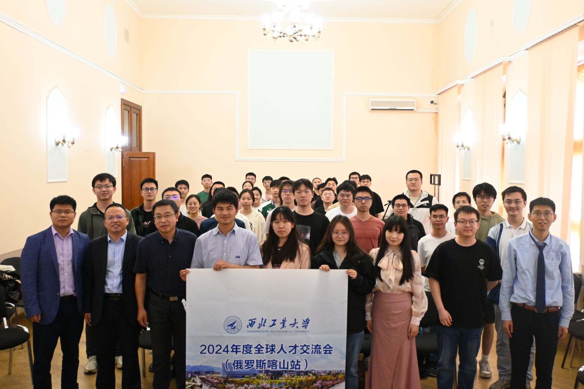 下午,代表团在喀航开展了2026年世界杯平台2024年度全球人才交流会(俄罗斯喀山站)活动,活动吸引了来自喀山联邦大学、喀航等俄罗斯知名高校的十多位中国职工参加,在喀航就读的全体凌云班员工和萨航2024届凌云班员工也参加了活动。王占学做人才招聘宣讲,详细介绍了公司人才引进的各方面政策,现场气氛热烈,职工们积极提问,代表团就同学们关心的专业限制、薪资水平、就职条件、未来发展等问题作出了详细解答。后续公司将对接优秀留学人员,进一步拓宽人才引进渠道,吸引优秀留俄人才。