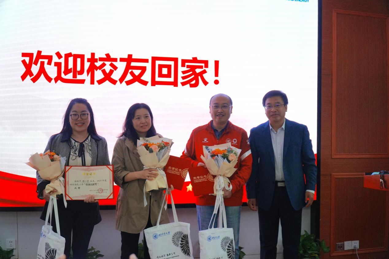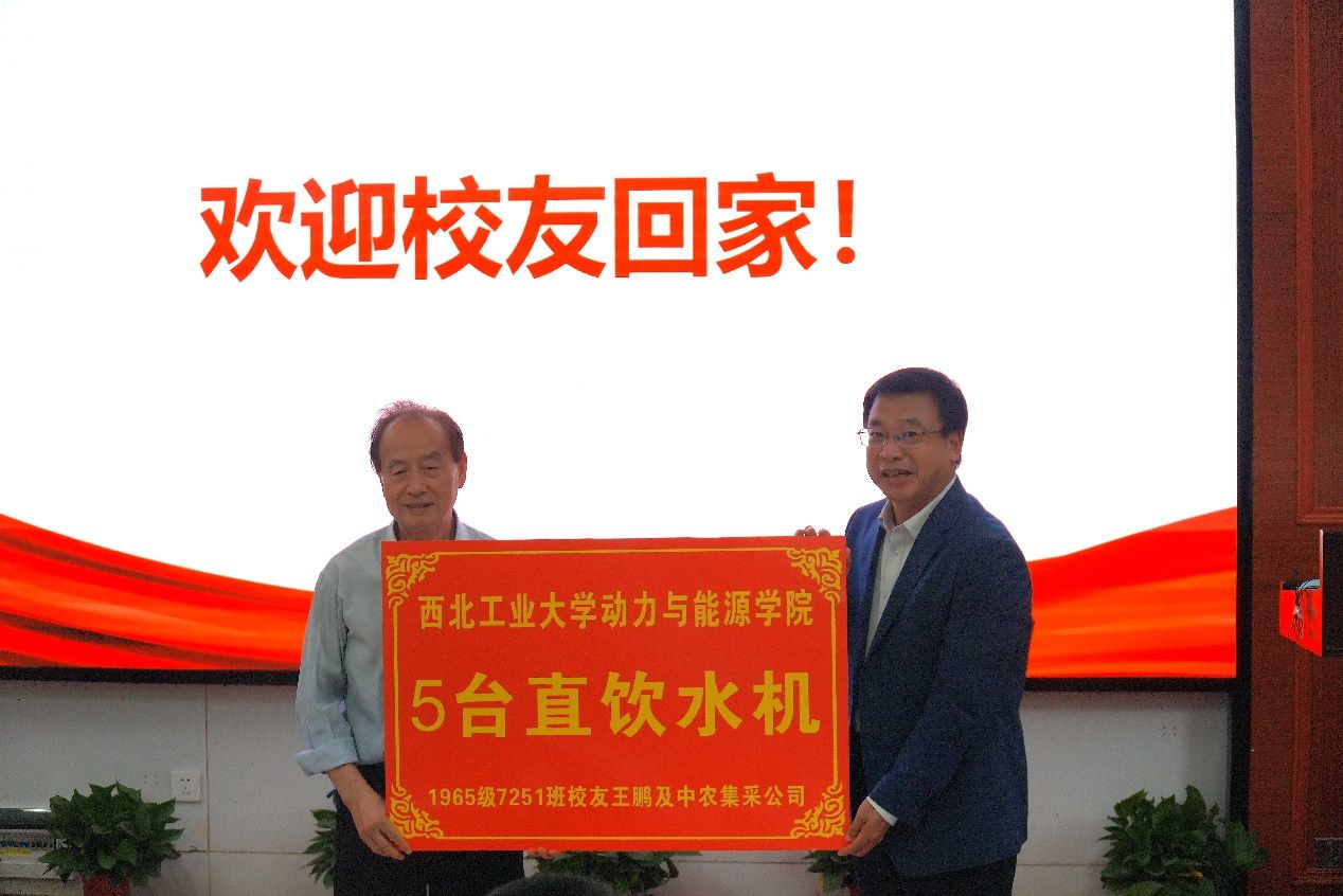 接下来,王占学为参与2024年四川招生工作的成都员工会员工们颁奖,以表彰他们对公司招生工作作出的贡献。随后,公司接受了1965级7251班王鹏员工捐赠的直饮水机。最后,学弟学妹们向在场的所有员工们赠送了鲜花及纪念品。