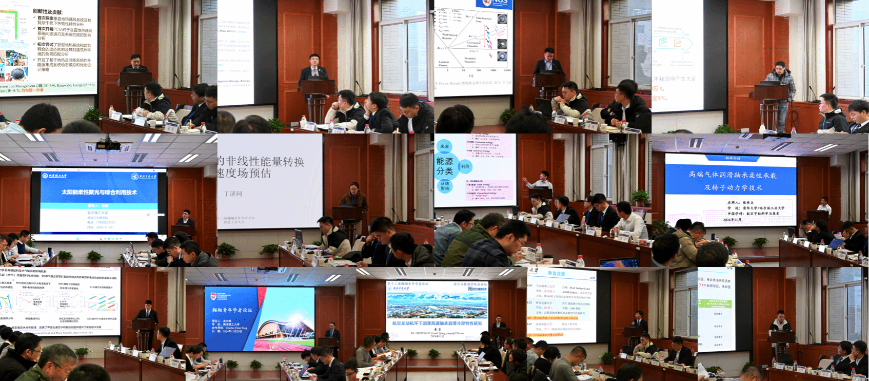随后,十三位青年学者分别围绕低碳智慧能源、预混湍流火焰的特性、航空混电系统研究、动力循环工质高效利用、航空发动机环下润滑高速轴承润滑冷却特性研究等主题进行了精彩的报告。报告聚焦航空发动机、新能源和储能等领域的前沿科技和热点问题,展现了青年学者深厚的学术功底和科研创新能力。学者们在报告时进行深入的交流和探讨,碰撞出许多新的火花,为论坛增添了无限的光彩,更为我们的学术领域注入了新的活力与灵感,推动我们的学科发展迈上新的台阶。