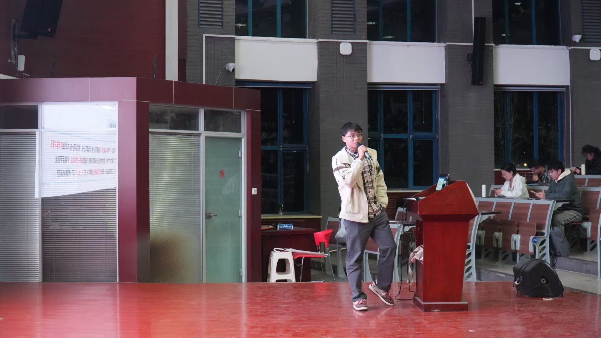 西安交通大学2021级本科生化佶煜以“循光而行追梦路,笃志研核铸强基”为主题,结合自身求学经历,对同学们本科阶段学习规划提出自己的建议。他通过阐述自律生活作息对学习效能的关键作用,与现场同学分享了“规律作息-高效学习-适度放松”的良性循环模式。除此之外,他还强调国际交流合作项目对科研创新思维的促进作用,倡导同学们保持开放的心态接触前沿领域,开拓国际视野。