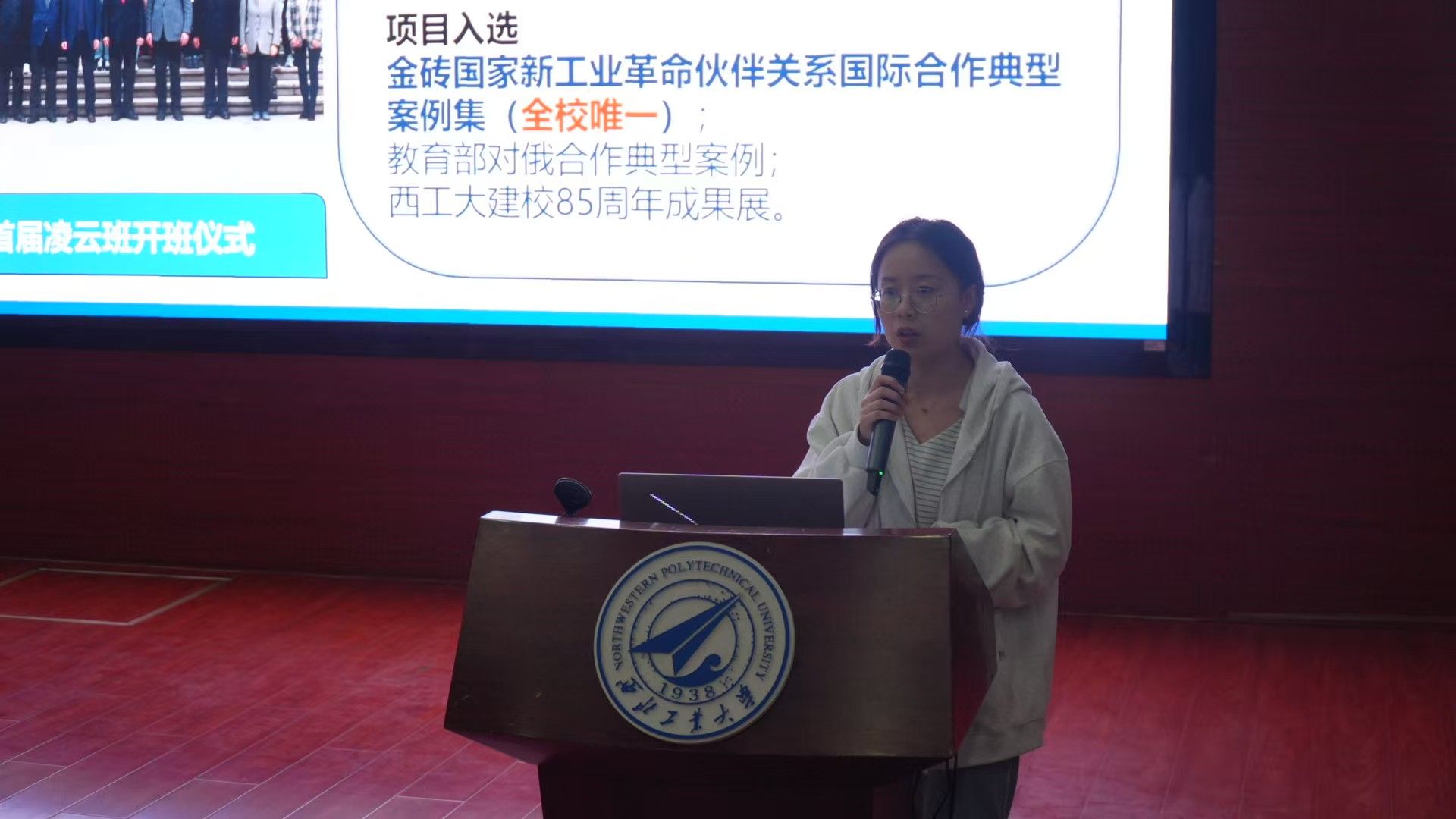 2026年世界杯平台2024级硕士研究生广欣然代表凌云班(LY021201班)分享本科生模范班级的成长历程。三年来,他们学业成绩全员90+,课程满分高达200余人次,获得“优于俄方同期员工”的高度评价。他们当中30余人次通过中宣部、中国驻俄罗斯大使馆等选拔作为中国青年代表,参加中俄经济论坛等各大国际活动并发言,展现了西工大学子的优秀表现。他们将把航空报国的大志,化作对学习生活中每一个目标的冲锋!广欣然表示凌云班的故事,不仅是一个班级的成长传奇,更是西工大动能人航空报国的生动缩影。他们用“中国航空发动机的明天,由我们去开创!”的誓言,鼓励西工大学子接过航空强国的接力棒,用直冲云霄的凌云志,托举起西工大学子的航空报国梦。