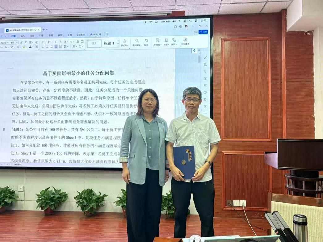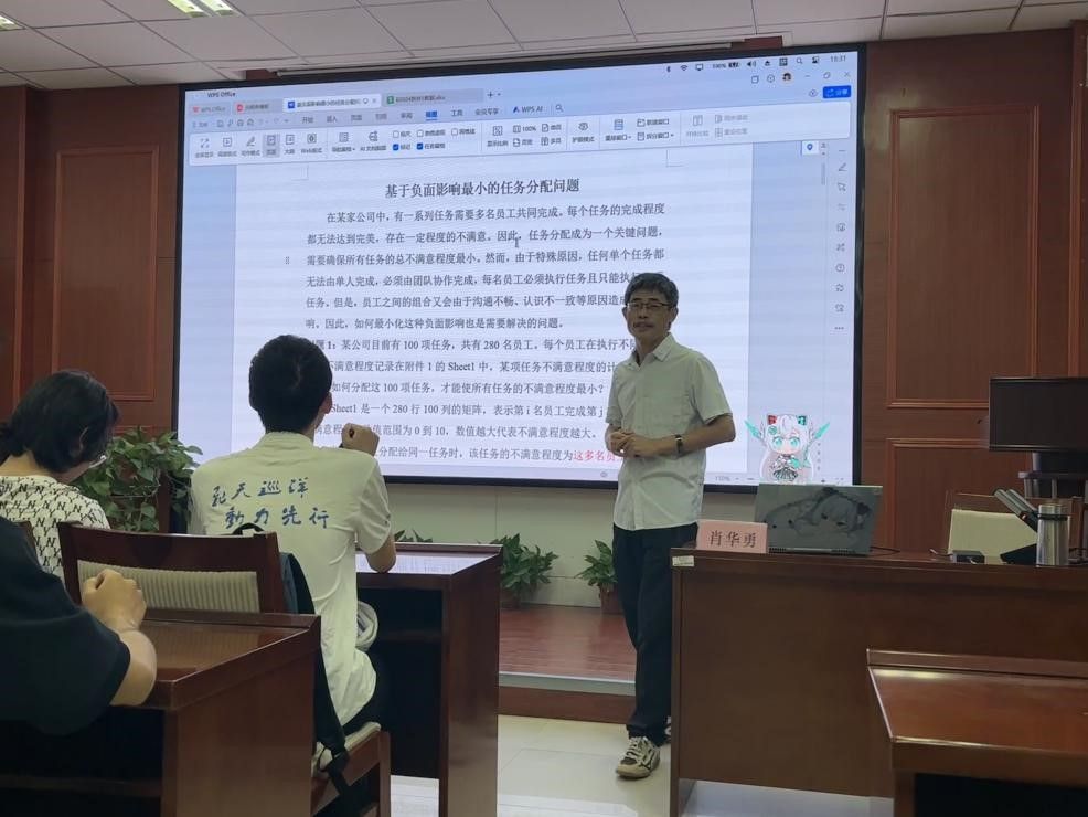 本次讲座中,肖教授结合典型数模题目,系统讲解了解题思路与方法,重点示范了LINGO、MATLAB等常用建模软件的基本操作与应用技巧,并就比赛过程中的常见问题与注意事项进行了细致指导。讲座内容紧贴竞赛实际,条理清晰,深入浅出,极大地拓宽了同学们的建模思路,提升了实战能力。