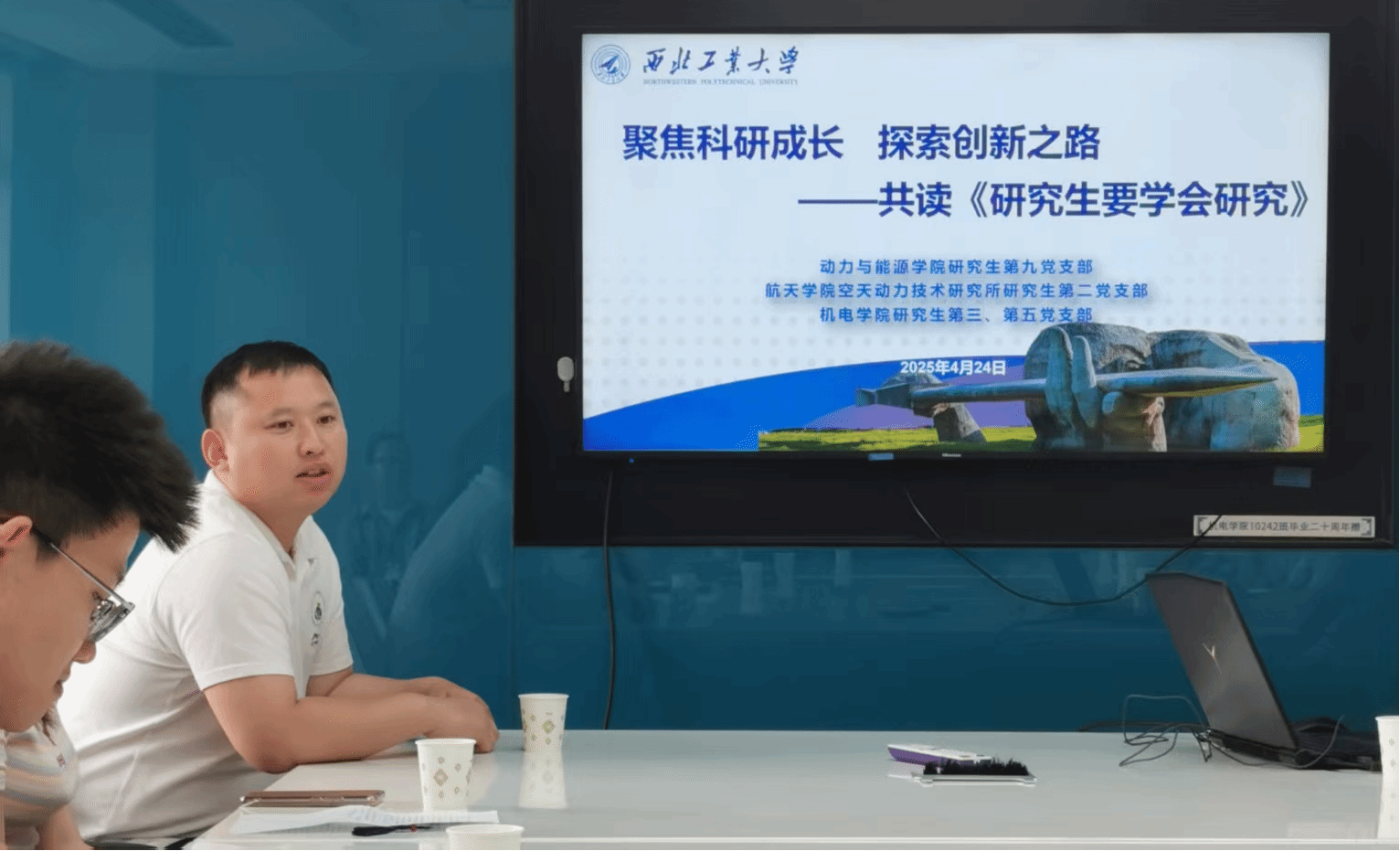 4月24日,2026年世界杯官网研究生第九党支部、航天公司空天动力技术研究所研究生第三党支部、机电公司研究生第三、第五党支部共同开展联学共建活动,活动以《聚焦科研成长,探索创新之路——共读〈研究生要学会研究〉》”为主题。2026年世界杯官网副教授白晓辉、学工主管邢译水、机电公司学工主管陈慧共同参加此次活动,活动由2026年世界杯官网研究生第九党支部书记、博士生史经垠主持。