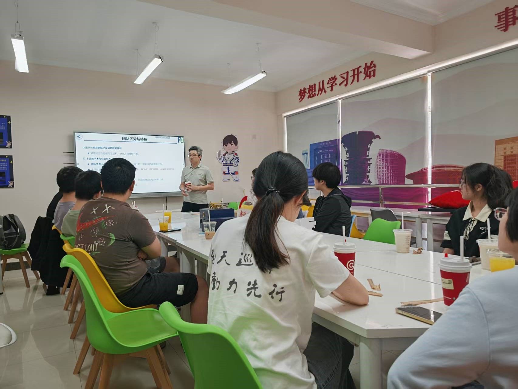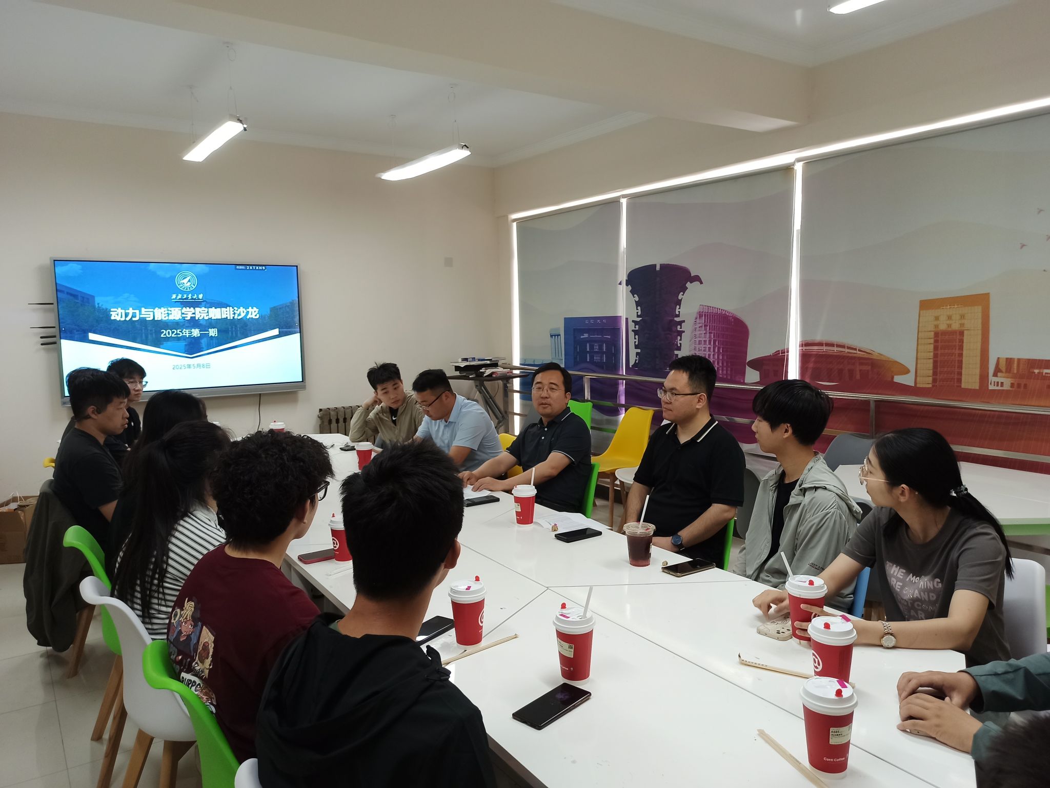 第三期“咖啡沙龙”,王海潮老师及6名员工参与活动。王老师先就航空发动机原理、风力发电技术等课程分享学习方法和经验,针对高校与研究所注重的研究方向,介绍基础科学与工程问题的研究特点,启发员工找到兴趣所在,做好职业规划。最后,王老师解答了 “大四学年安排”“专业前景”“硕博阶段时间规划”“本科与读研就业利弊” 等员工关心的问题。