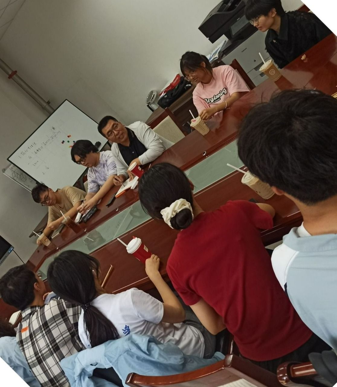 第五期“咖啡沙龙”,张丽芬老师及9名员工参与活动。张老师介绍了课题组情况,强调研究生阶段要有自己的方向,选导师不要扎堆、盲从,要根据自身情况选择适合自己的公司、研究方向和导师,且员工一定要做项目,摒弃为导师打工的思想,发挥积极性,主动与导师联系。员工就 “研究生和博士培养差异”、“是否读博”、“研究生考勤问题” 进行提问,张老师做了细致答复。