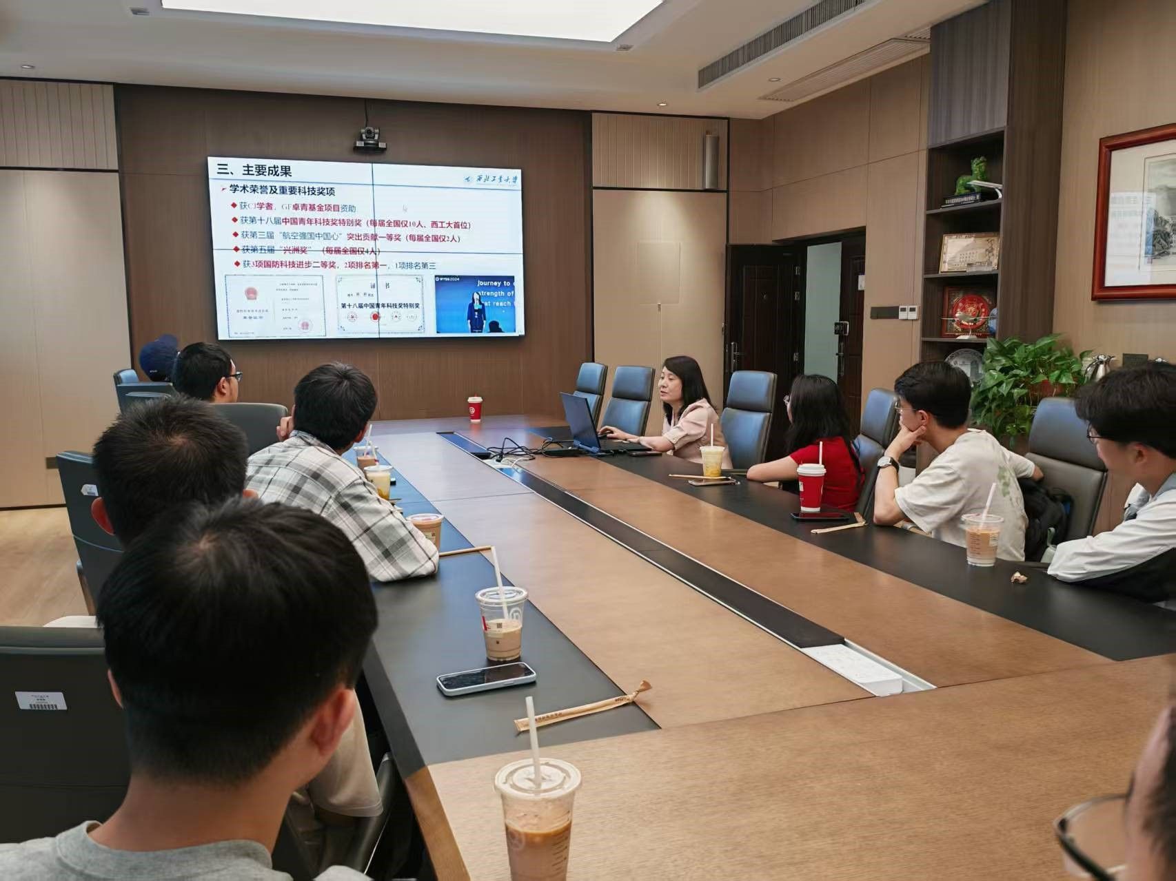 第六期“咖啡沙龙”,周莉老师及12名员工参与活动。周老师介绍了科研团队情况,对主要新型排气系统及短舱型面设计及优化技术、高速飞行器及高温排气系统红外辐射预测及实验技术、开式转子及推力风扇设计技术进行了重点介绍。在互动交流环节,周老师就员工提出的“本科生如何培养编程和仿真软件使用能力?”、“升学如何考虑公司和研究方向?”、“航发专业职业前景?”、“航发专业研究生海外交流机会?”等问题做了耐心细致的回答。