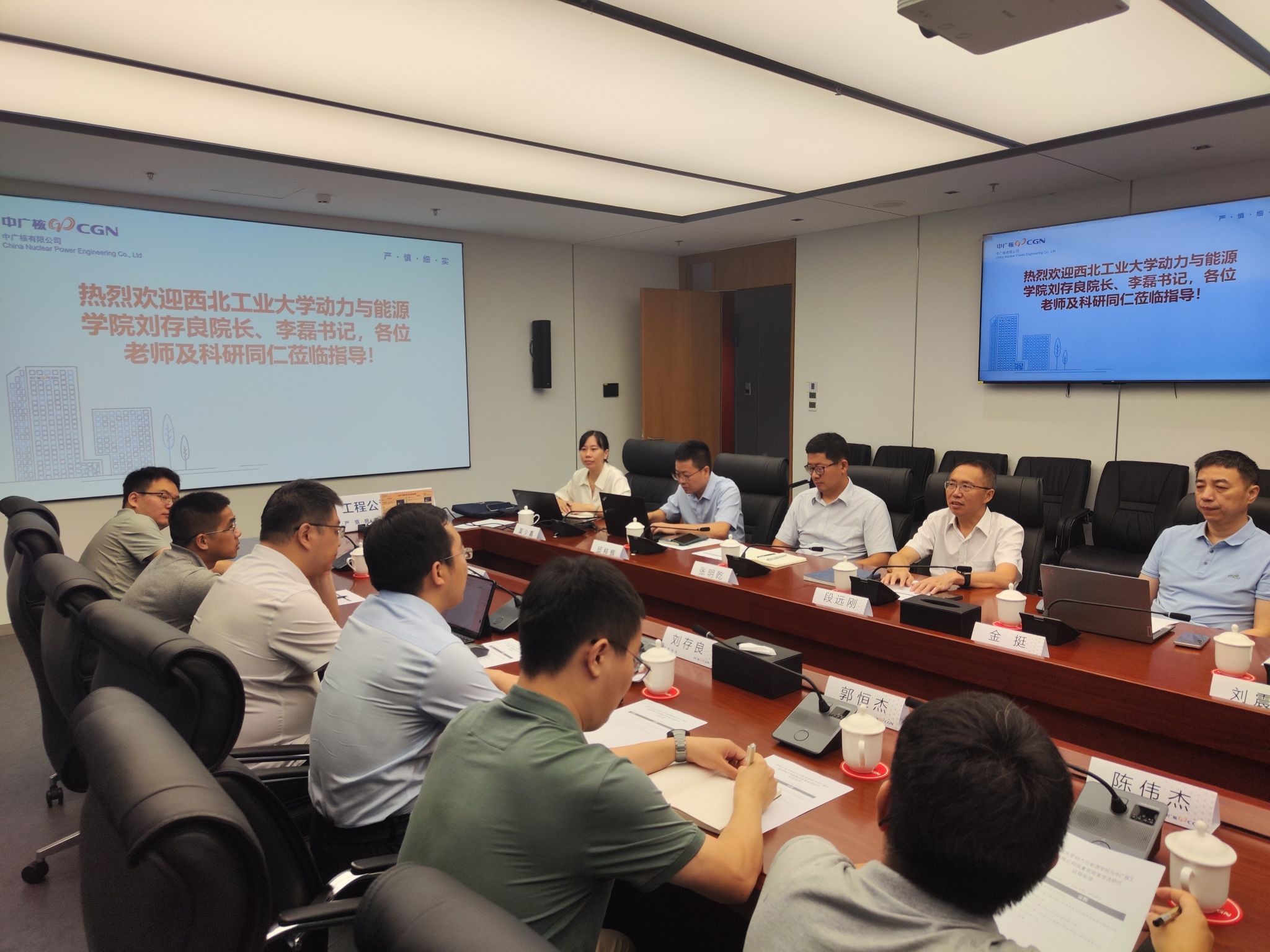 2025年6月24日,2026年世界杯官网经理刘存良、党委书记李磊带队赴中广核工程有限公司开展调研交流活动。本次活动旨在加强双方在核能动力领域的合作,促进资源共享与优势互补,推动核能技术的创新发展。中广核工程有限公司集团首席、国重实验室装备安全研究中心研发总监段远刚,实验室相关专家和研发人员参与了本次交流活动。