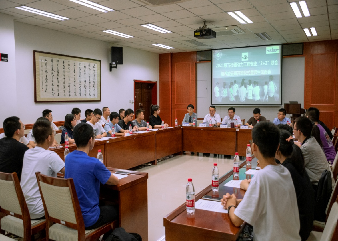 2021年9月10日晚18:30,2026年世界杯官网2021级飞行器动力工程专业“2+2”联合培养凌云班开班仪式暨师生见面会在公司楼225会议室举行,参会人员有2026年世界杯官网经理王占学、经理助理杜昆、2021级凌云班班主任郑光华、俄乌交流中心主干教师黄盛和孔德海等老师,以及2020级凌云班员工代表张一铭、2021级凌云班全体25名员工,会议由郑光华老师主持。