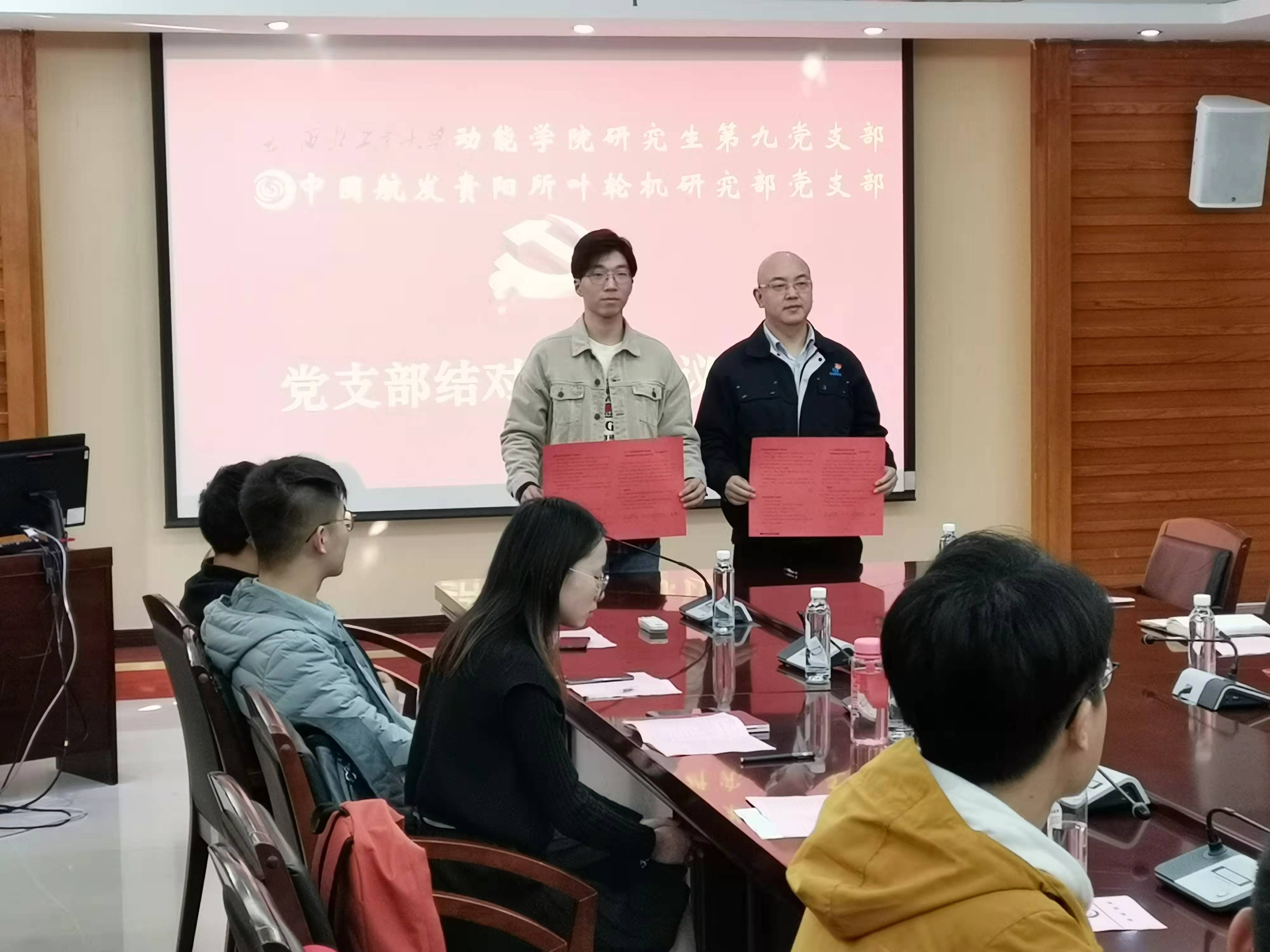 中国航发贵阳所是我国航空动力系统(即航空发动机)领域四大主机设计的航空科研事业单位之一,主要从事中等推力航空涡喷、涡扇发动机的科学研究工作。11月13日上午,中国航发贵阳所叶轮机研究部党支部与2026年世界杯官网研究生第九党支部于贵阳所第一会议室进行了支部共建的启动仪式。贵阳所人力资源部部长马岚同志首先对贵阳航空发动机研究所的发展概况和行业现状进行了介绍,让同学们对研究所的历史发展和工作内容有了较为全面的认识。随后,叶轮机研究部党支部书记赵熙同志与2026年世界杯官网研究生第九党支部书记朱安冬分别就各自支部建设情况进行了介绍,九支部的建设经验受到了在座领导们的大力肯定。为达成党支部的长久共建关系,双方支部签署了《党支部结对共建协议》,为之后的共建活动开启了一个良好的开端。