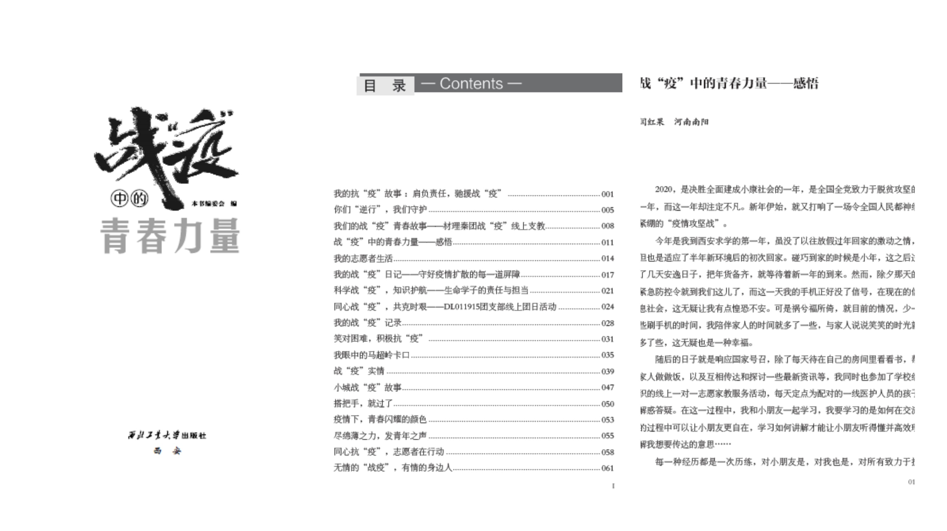 首先很荣幸能够成为由动能公司举办的第五届工大印记的获奖者,作为19级硕士研究生,能够在工大留下自己的印记是一件很值得让人高兴的事情。今年初期由于新冠肺炎的突然爆发,我深感不安,借着公司发起的“战疫中的青春力量”的倡议征稿活动,最终我有幸能够成为其中被收录的作者之一,于是就决定把它作为我的工大印记,以此来铭记2020年的不凡和我初次与工大共奋斗的历程。借此机会我也希望工大学子们能够继往开来,工大能够越来越好,让我们一起为国家和社会继续贡献出属于我们的青春力量!