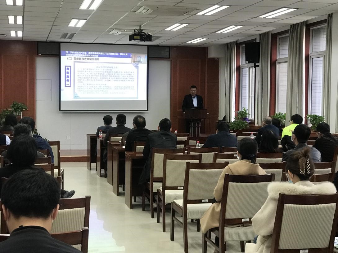 闫育周书记通过对警示教育大会案例经典案例的通报,强调了对高校教师师德失范行为实行“一票否决”,高校教师出现违反师德行为的,根据情节轻重,给予相应处理或处分。