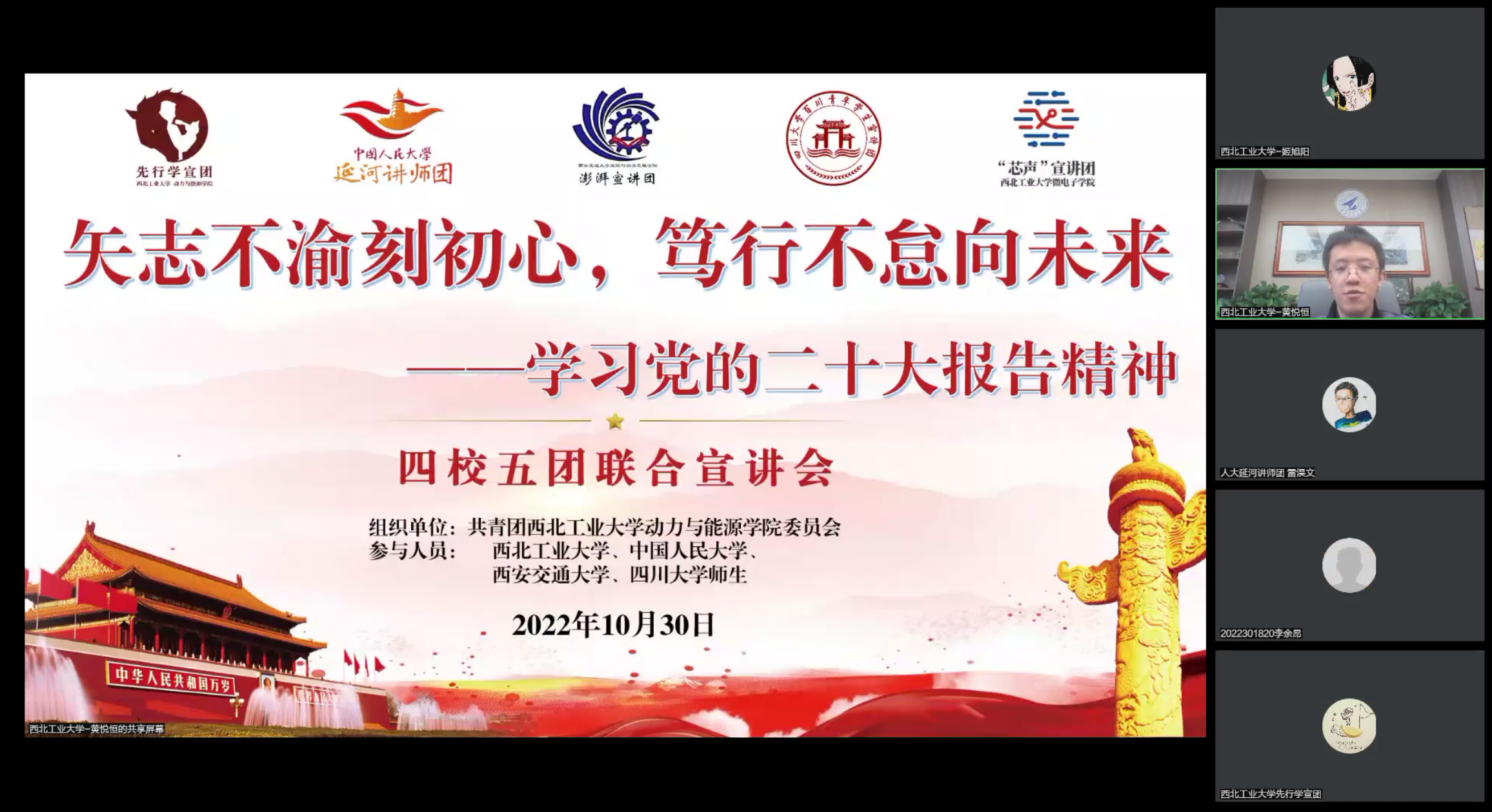 与此同时,海外留学的数十名学子克服时差困难,也通过腾讯会议收看了此次四校五团联合宣讲活动,并表示收获颇丰。
