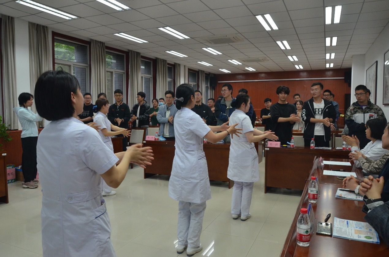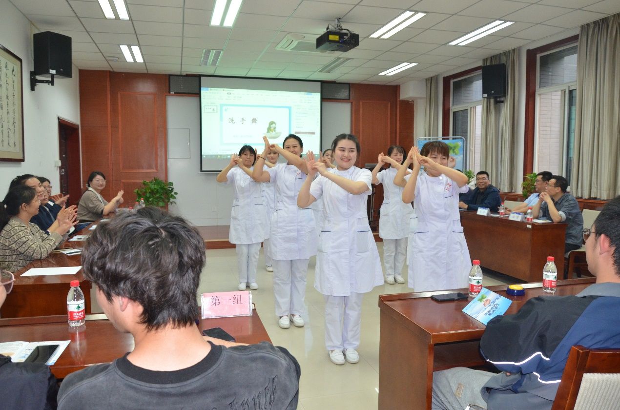 统分间隙,校医院的医护人员们带来了精彩节目“洗手舞”。伴随着活泼灵动的音乐,医护人员用可爱的舞姿带同学们重温了七步洗手法,并邀请同学们一起做“洗手舞”。