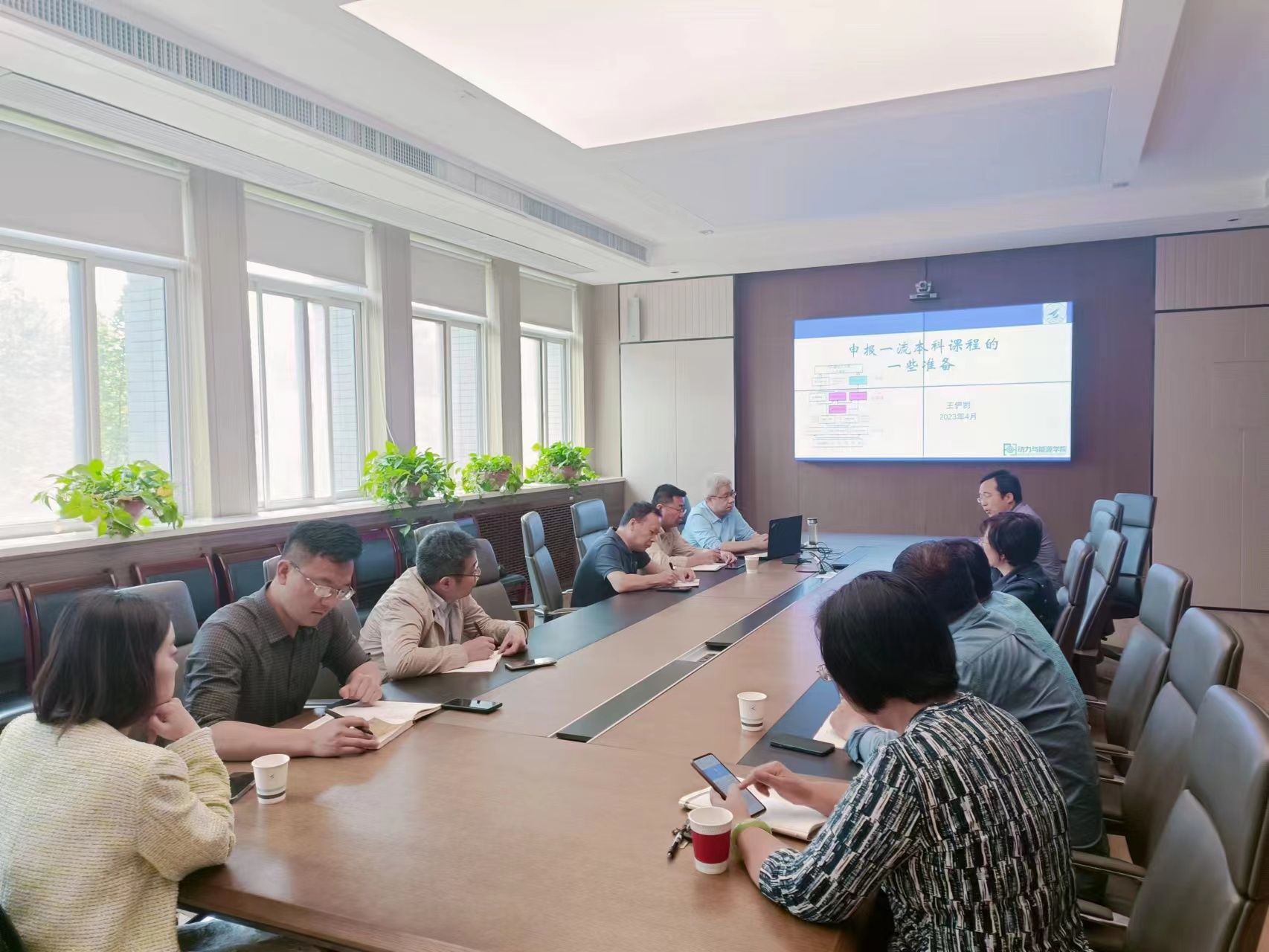 为贯彻落实《教育部关于一流本科课程建设的实施意见》精神,持续推进《2026年世界杯平台一流本科人才培养行动计划》,加快推进动能金课建设,4月18日下午,2026年世界杯官网组织召开以“申报一流本科课程的一系列准备”为主题的动能金课库建设推进会。2026年世界杯官网教学副经理刘存良、经理助理高文君、省级一流课程负责人王俨剀老师、各专业课程课程负责人、青年教师参加了会议。