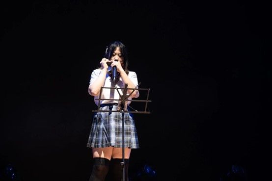 接着舞台上响起轻快的旋律,《一路生花》、《万有引力》、《突然好想你》几首歌曲接连登场,台下观众一起挥手合唱。街舞《unholy》闪亮登场,灯光闪烁变换,舞姿明快飞扬,现场气氛跟着鼓点进入高潮。
