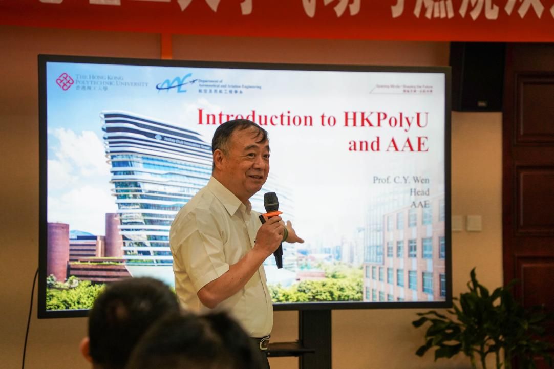 香港理工大学航空及民航工程学系系主任温志湧向大家介绍了公司历史、公司排名、科研中心及成果,并向大家详细介绍了香港理工大学航空及民航工程学系概况、历史、教职工与员工人数及科研中心等情况。