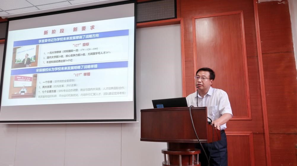 会上,王占学经理全面解读了李言荣书记提出的“127”发展目标和宋保维董事长提出的“127”具体落实举措以及全校干部大会的主要精神。回顾了公司上半年的主要工作进展,特别是分享了范玮、符江锋、郑光华、王俨剀等优秀教师代表的奋斗历程和感人之处,同时,对标与双一流评价密切相关的29项核心发展指标,分析公司的优势特色、问题短板和主要发力点,对公司下半年的重点工作做了明确部署。