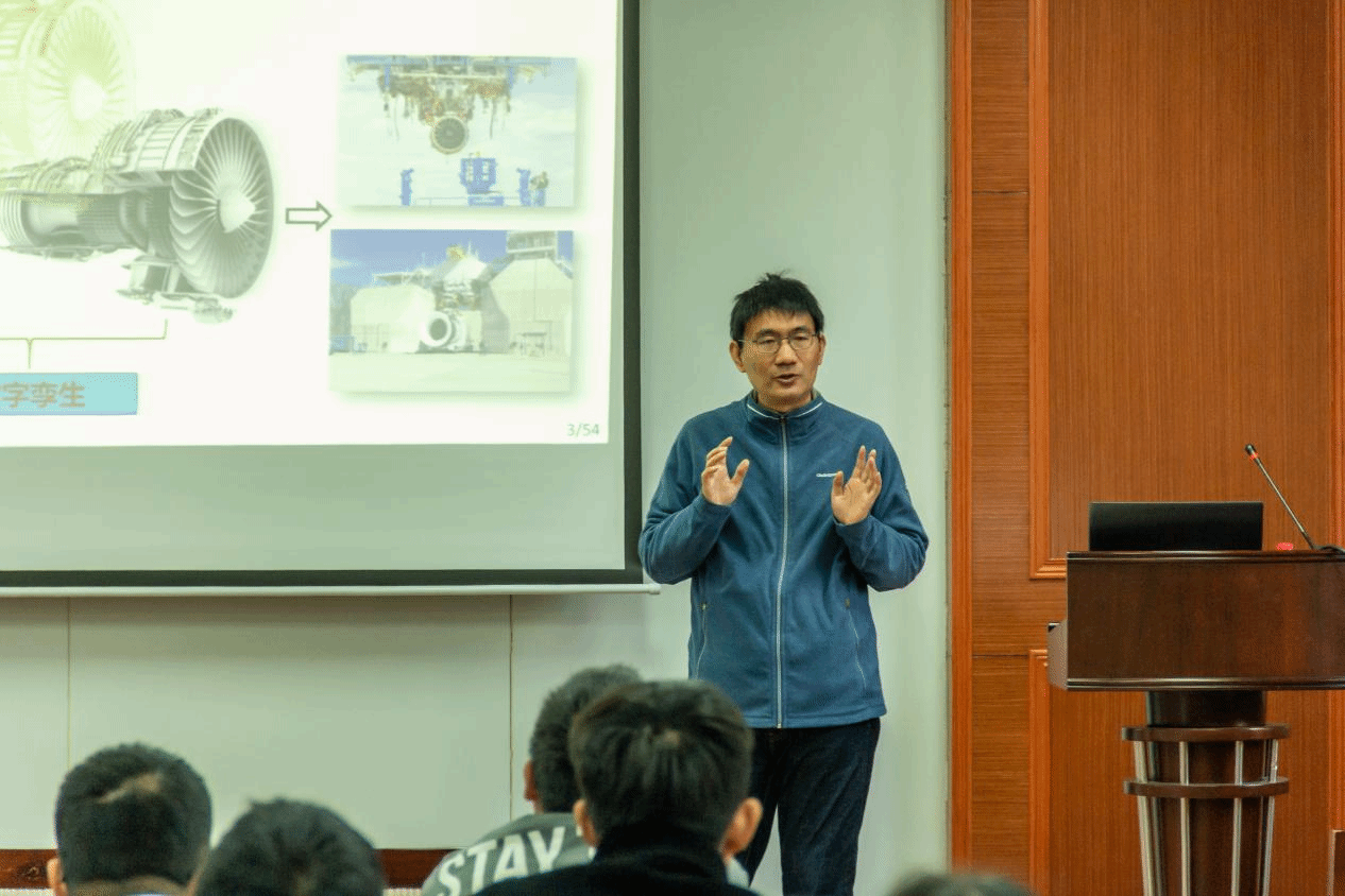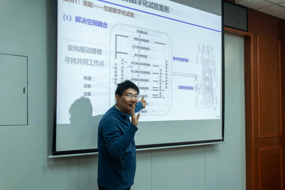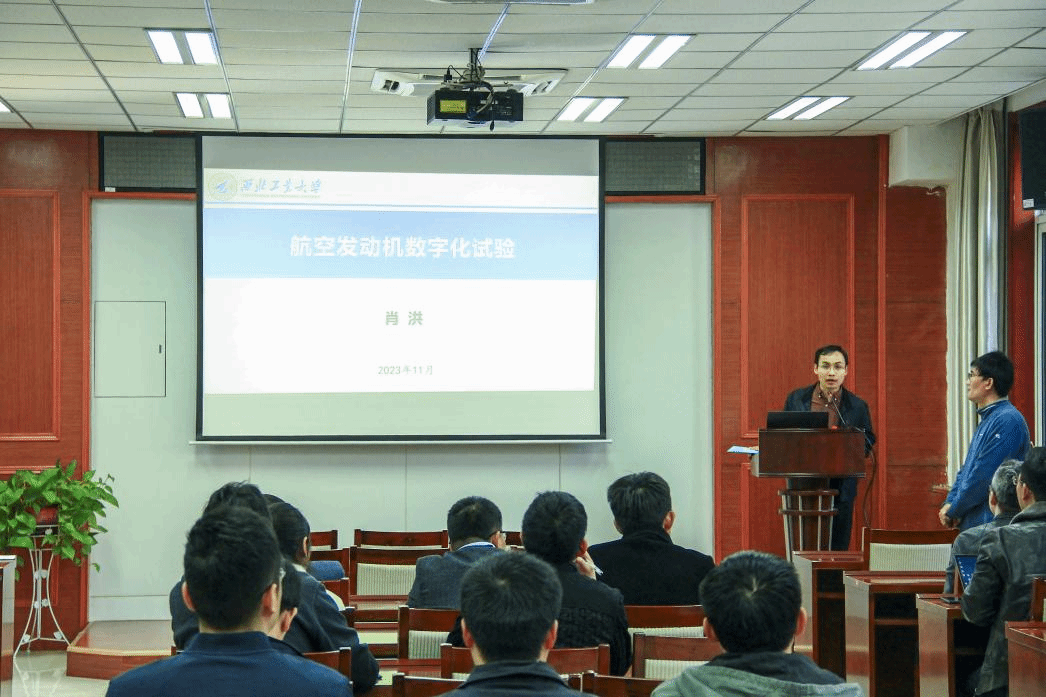 肖洪教授为与会教师分析了航空发动机行业数字化与智能化发展现状,详细解读了数字化试验的背景与优势。随后,肖老师从装配、振动、破坏性故障试验、性能实时监控等9个方面介绍了航空发动机数字化试验的典型应用案例,又从数字孪生知识迁移和智能网络两个方面对数字化试验进行了讲解。最后,肖洪教授对航空发动机数字孪生小模型和大模型概念及应用进行了介绍。