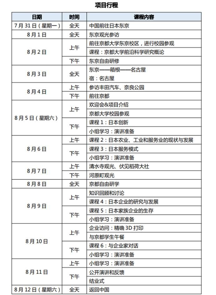 项目费【包含】学费、项目报名费、住宿费、接送机、在日期间集体活动交通费,海外意外保险费、材料国际邮费等