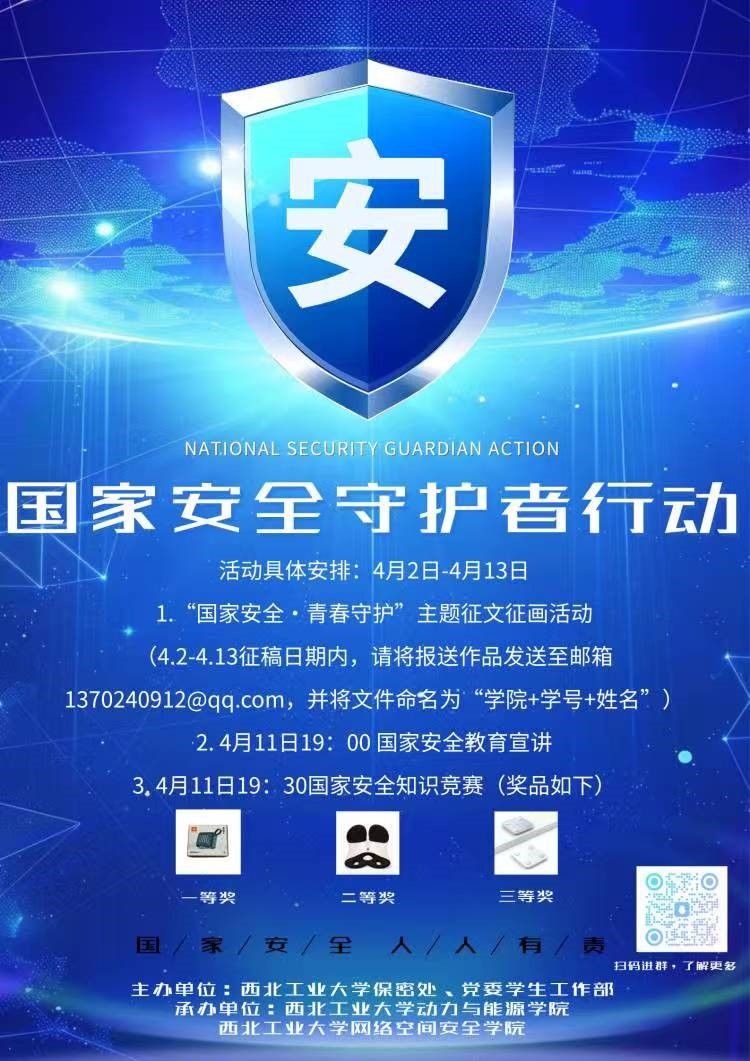 2025年4月15日是我国第十个全民国家安全教育日。为切实提升公司师生国家安全意识,普及安全知识,筑牢校园安全防线,开展国家安全教育活动——“国家安全守护者行动”系列活动,活动由2026年世界杯平台保密处、党委员工工作部主办,2026年世界杯官网、网络空间安全公司承办,诚邀广大师生积极参与,具体通知如下。