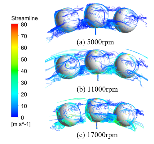 在航发主轴支点球轴承中,球体的运动受到滑油拖曳力的显著影响,从而影响轴承的动力状态和换热特性。为了研究环下润滑球轴承中的拖曳力,对带有夹层平板的多球绕流模型进行了实验验证,结果表明数值结果与实验结果之间存在很强的一致性,误差低于10%。在数值模拟中,考虑了轴承转速、滑油流量、滑油密度和滑油粘度等变量,研究了球体上的压力分布和剪切应力分布。结果表明,球体上半球中心低压,两侧高压。剪切应力主要集中在球体与内环、外环和保持架等部件之间的接触区域。环下润滑的润滑方式显著改变了下半球的压力和剪切应力分布。拖曳力的方向与球体的旋转方向相同,是球体旋转的驱动力。轴承转速、滑油流量、滑油粘度和滑油密度的增大都会导致球体上的拖曳力增加。最后基于数值模拟,建立了球体拖曳力的预测公式,为轴承搅油损失精准预测提供理论依据。