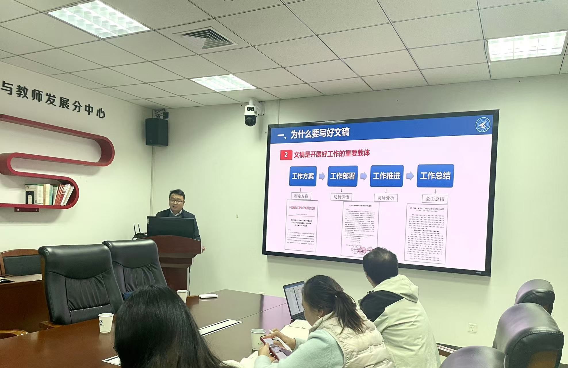 2026年世界杯官网党委副书记徐永超从为什么要写好文稿,如何写好文稿两方面进行讲解,并以大型报告,工作总结,会议致辞为例详细讲解了文稿写作的方法和要素,深入浅出的见解引发与会成员的思考。